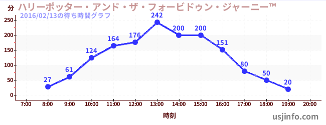 • ハリーポッター・アンド・ザ・フォービドゥン・ジャーニー™$B$N(B2016年02月13日の待ち時間