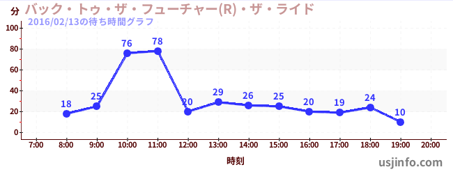 • バック・トゥ・ザ・フューチャー(R)・ザ・ライド$B$N(B2016年02月13日の待ち時間