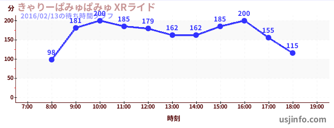 • きゃりーぱみゅぱみゅ XRライド$B$N(B2016年02月13日の待ち時間