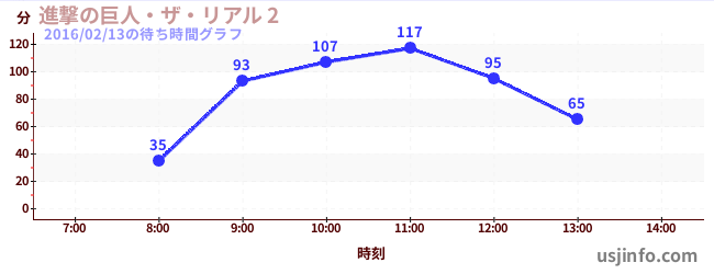 • 進撃の巨人・ザ・リアル 2$B$N(B2016年02月13日の待ち時間
