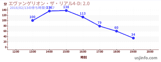 • エヴァンゲリオン・ザ・リアル4-D: 2.0$B$N(B2016年02月13日の待ち時間