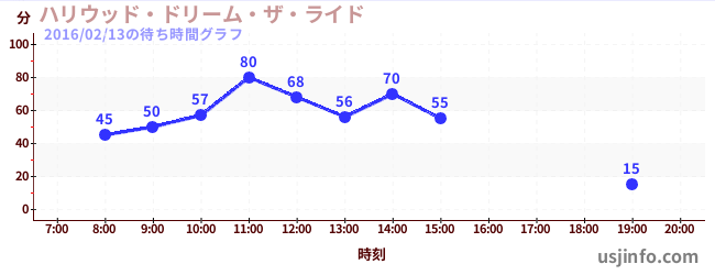 • ハリウッド・ドリーム・ザ・ライド$B$N(B2016年02月13日の待ち時間