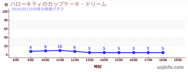 • ハローキティのカップケーキ・ドリーム$B$N(B2016年02月15日の待ち時間