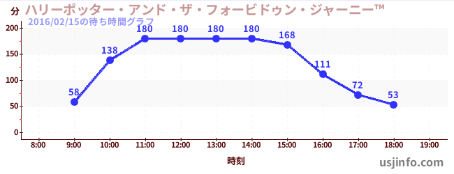 • ハリーポッター・アンド・ザ・フォービドゥン・ジャーニー™$B$N(B2016年02月15日の待ち時間