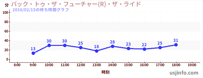 • バック・トゥ・ザ・フューチャー(R)・ザ・ライド$B$N(B2016年02月15日の待ち時間