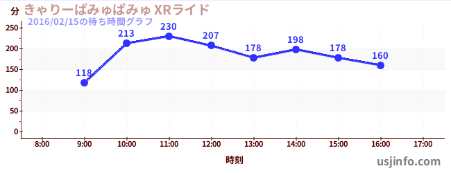 • きゃりーぱみゅぱみゅ XRライド$B$N(B2016年02月15日の待ち時間