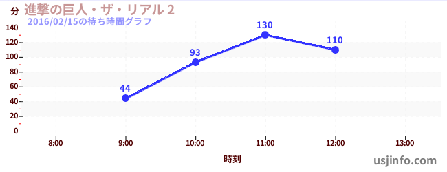 • 進撃の巨人・ザ・リアル 2$B$N(B2016年02月15日の待ち時間