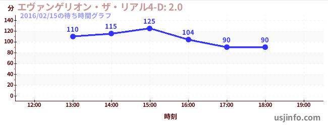 • エヴァンゲリオン・ザ・リアル4-D: 2.0$B$N(B2016年02月15日の待ち時間