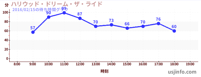 • ハリウッド・ドリーム・ザ・ライド$B$N(B2016年02月15日の待ち時間