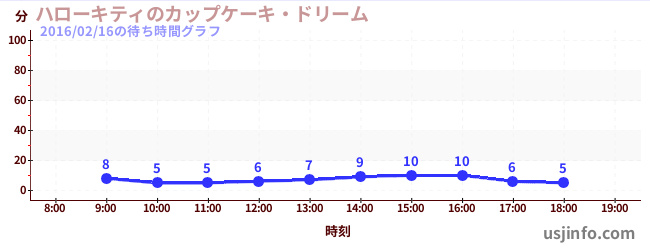 • ハローキティのカップケーキ・ドリーム$B$N(B2016年02月16日の待ち時間