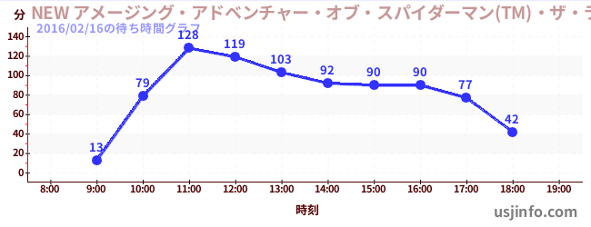 • NEW アメージング・アドベンチャー・オブ・スパイダーマン(TM)・ザ・ライド 4K3D$B$N(B2016年02月16日の待ち時間