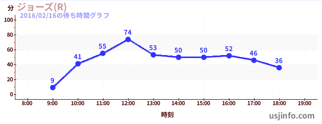 • ジョーズ(R)$B$N(B2016年02月16日の待ち時間