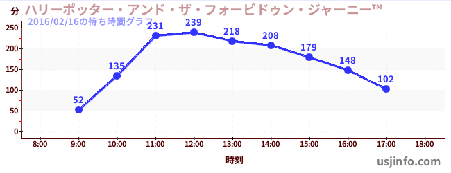 • ハリーポッター・アンド・ザ・フォービドゥン・ジャーニー™$B$N(B2016年02月16日の待ち時間