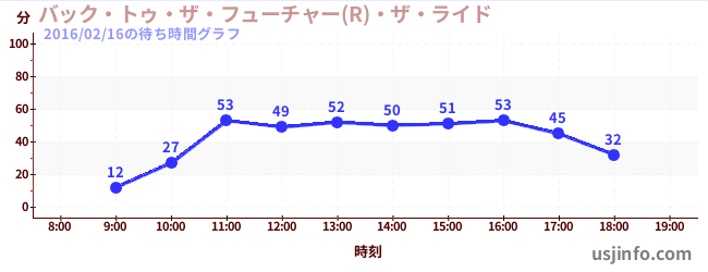 • バック・トゥ・ザ・フューチャー(R)・ザ・ライド$B$N(B2016年02月16日の待ち時間