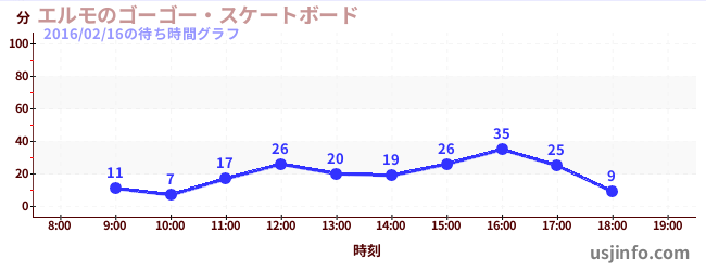 • エルモのゴーゴー・スケートボード$B$N(B2016年02月16日の待ち時間