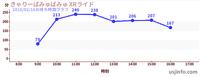 • きゃりーぱみゅぱみゅ XRライド$B$N(B2016年02月16日の待ち時間