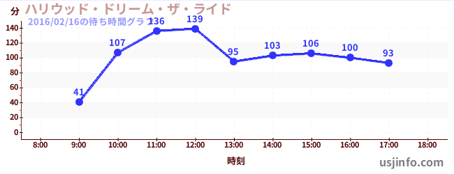• ハリウッド・ドリーム・ザ・ライド$B$N(B2016年02月16日の待ち時間
