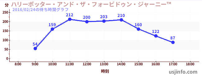 • ハリーポッター・アンド・ザ・フォービドゥン・ジャーニー™$B$N(B2016年02月24日の待ち時間
