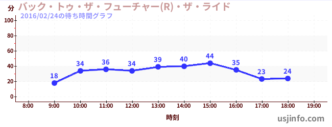 • バック・トゥ・ザ・フューチャー(R)・ザ・ライド$B$N(B2016年02月24日の待ち時間