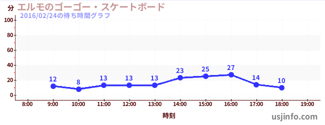 • エルモのゴーゴー・スケートボード$B$N(B2016年02月24日の待ち時間