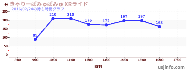 • きゃりーぱみゅぱみゅ XRライド$B$N(B2016年02月24日の待ち時間