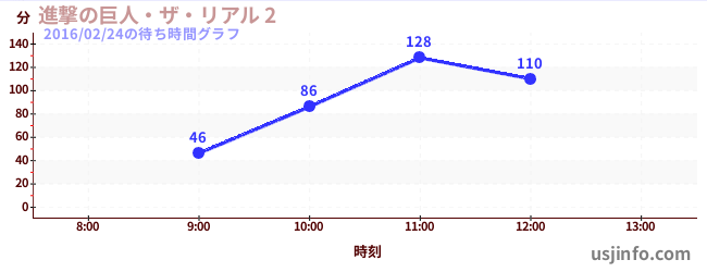• 進撃の巨人・ザ・リアル 2$B$N(B2016年02月24日の待ち時間