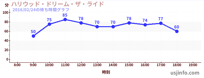 • ハリウッド・ドリーム・ザ・ライド$B$N(B2016年02月24日の待ち時間