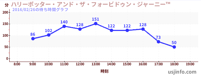 • ハリーポッター・アンド・ザ・フォービドゥン・ジャーニー™$B$N(B2016年02月26日の待ち時間