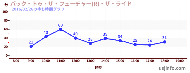 • バック・トゥ・ザ・フューチャー(R)・ザ・ライド$B$N(B2016年02月26日の待ち時間