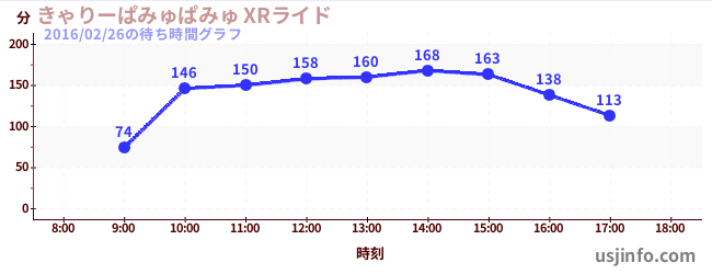• きゃりーぱみゅぱみゅ XRライド$B$N(B2016年02月26日の待ち時間