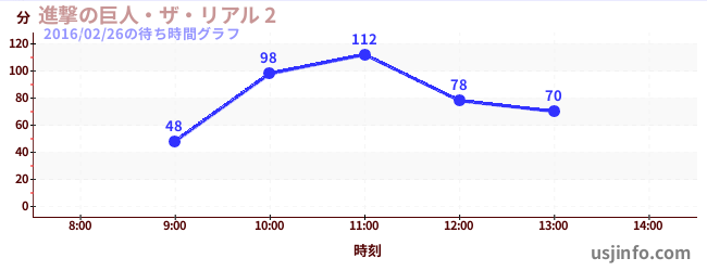 • 進撃の巨人・ザ・リアル 2$B$N(B2016年02月26日の待ち時間