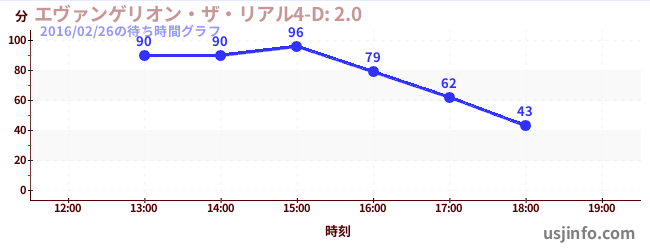 • エヴァンゲリオン・ザ・リアル4-D: 2.0$B$N(B2016年02月26日の待ち時間