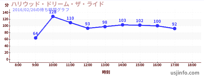 • ハリウッド・ドリーム・ザ・ライド$B$N(B2016年02月26日の待ち時間