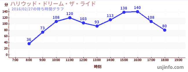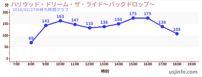• ハリウッド・ドリーム・ザ・ライド〜バックドロップ〜$B$N(B2016年02月27日の待ち時間