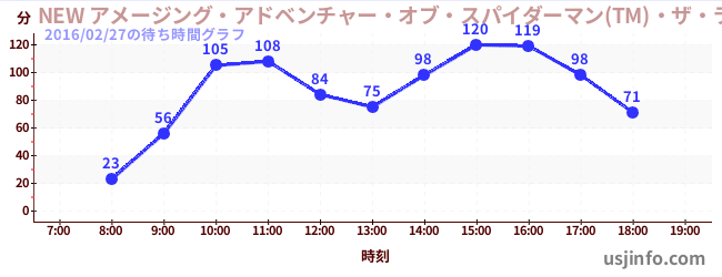 • NEW アメージング・アドベンチャー・オブ・スパイダーマン(TM)・ザ・ライド 4K3D$B$N(B2016年02月27日の待ち時間