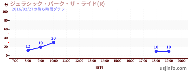 • ジュラシック・パーク・ザ・ライド(R)$B$N(B2016年02月27日の待ち時間