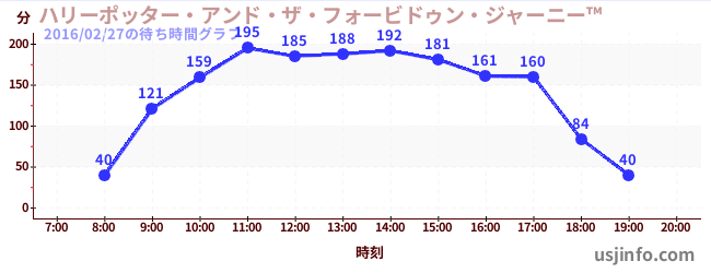 • ハリーポッター・アンド・ザ・フォービドゥン・ジャーニー™$B$N(B2016年02月27日の待ち時間