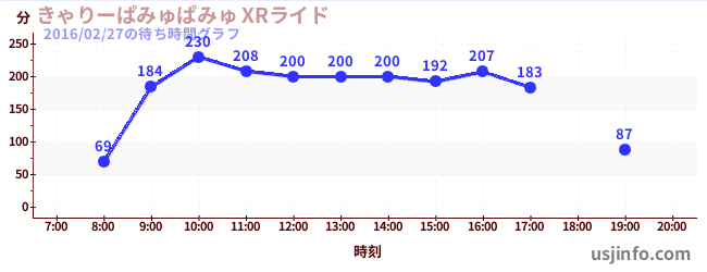 • きゃりーぱみゅぱみゅ XRライド$B$N(B2016年02月27日の待ち時間