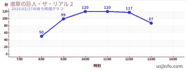 • 進撃の巨人・ザ・リアル 2$B$N(B2016年02月27日の待ち時間