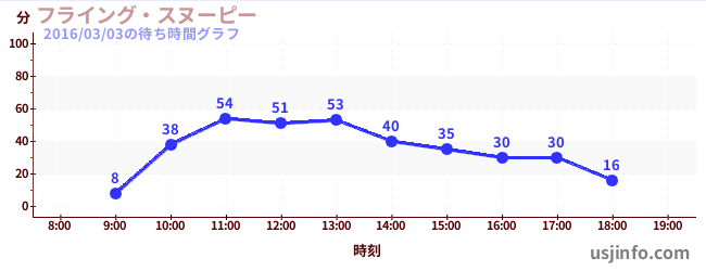 • フライング・スヌーピー$B$N(B2016年03月03日の待ち時間