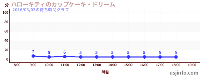 • ハローキティのカップケーキ・ドリーム$B$N(B2016年03月03日の待ち時間