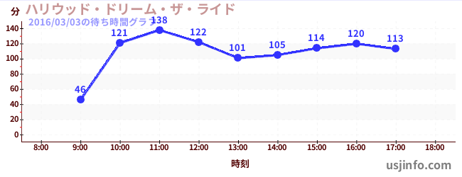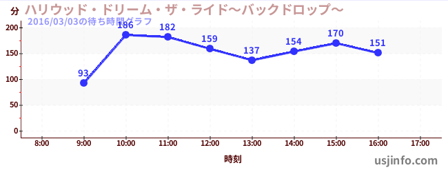 • ハリウッド・ドリーム・ザ・ライド$B$N(B2016年03月03日の待ち時間