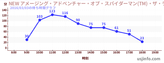 • NEW アメージング・アドベンチャー・オブ・スパイダーマン(TM)・ザ・ライド 4K3D$B$N(B2016年03月03日の待ち時間