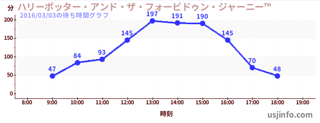 • ハリーポッター・アンド・ザ・フォービドゥン・ジャーニー™$B$N(B2016年03月03日の待ち時間