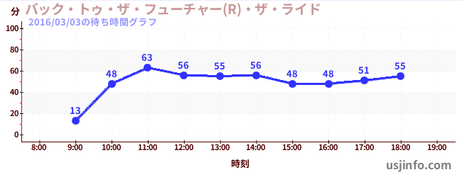 • バック・トゥ・ザ・フューチャー(R)・ザ・ライド$B$N(B2016年03月03日の待ち時間