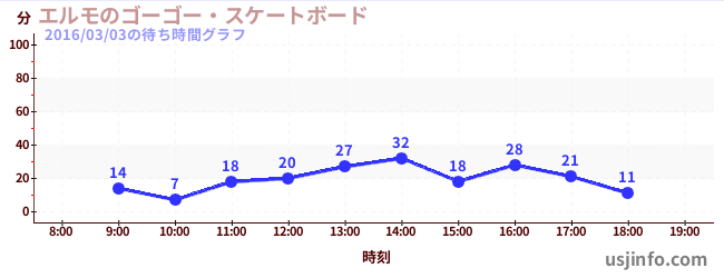• エルモのゴーゴー・スケートボード$B$N(B2016年03月03日の待ち時間