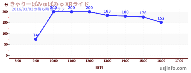 • きゃりーぱみゅぱみゅ XRライド$B$N(B2016年03月03日の待ち時間