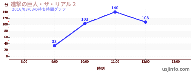 • 進撃の巨人・ザ・リアル 2$B$N(B2016年03月03日の待ち時間