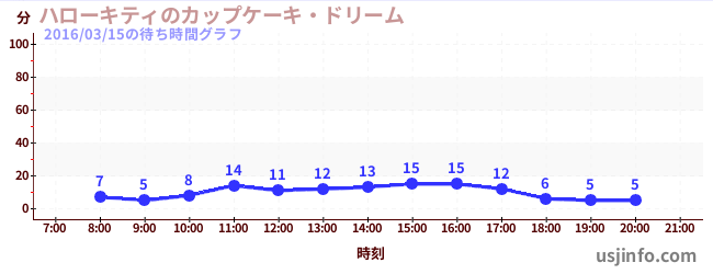 • ハローキティのカップケーキ・ドリーム$B$N(B2016年03月15日の待ち時間