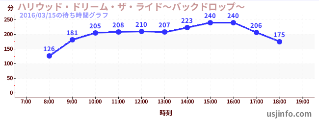 • ハリウッド・ドリーム・ザ・ライド〜バックドロップ〜$B$N(B2016年03月15日の待ち時間